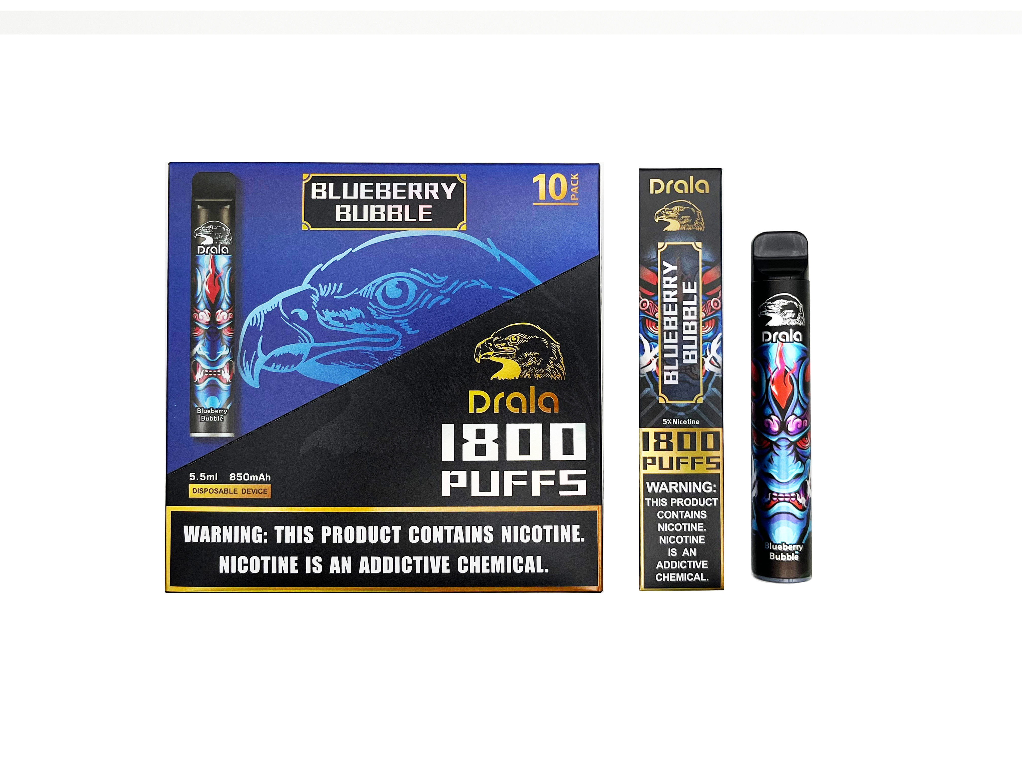 DRALA P1000 1800は再充電可能で使い捨て可能なVapeである使い捨て可能な設計の優れたvaping装置吹く。それはまた超可搬性を提供している間あなたの手のやしの快適な経験を与える小型立方体の形に類似している。非常に密集したけれども、使い捨て可能なDRALA P1000は延ばされていたvapeの会議を提供する統合された850のmAhの充電電池を(タイプC充満港によって満たされる)収納することをどうにかして。より広いスタンスが原因で、装置は大きい5.5mL vapeジュース容量を自慢し、単位ごとの2% (20mg)の総合的なニコチンの1800までのパフを受け取るために保障する。可能な最高の性能を示すためにはDRALA P1000使い捨て可能なVapeは長続きがする楽しみのあなたの航空路を塗り、無限に満足vapingを作る味の作成を驚かせる網のコイルを利用する。